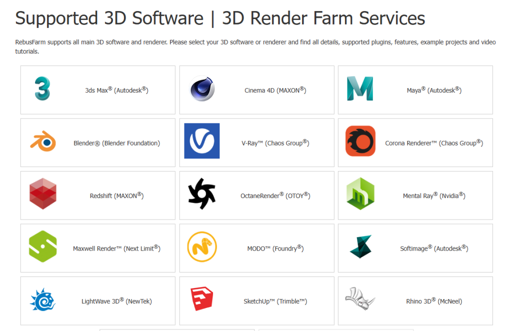 | iRender | RebusFarm | GarageFarm | RANCH Computing | Fox Renderfarm | |