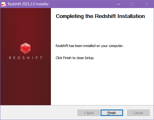 이제 Redshift 설치가 완료되었습니다. “마침”을 클릭하여 설치 프로그램을 닫으세요.